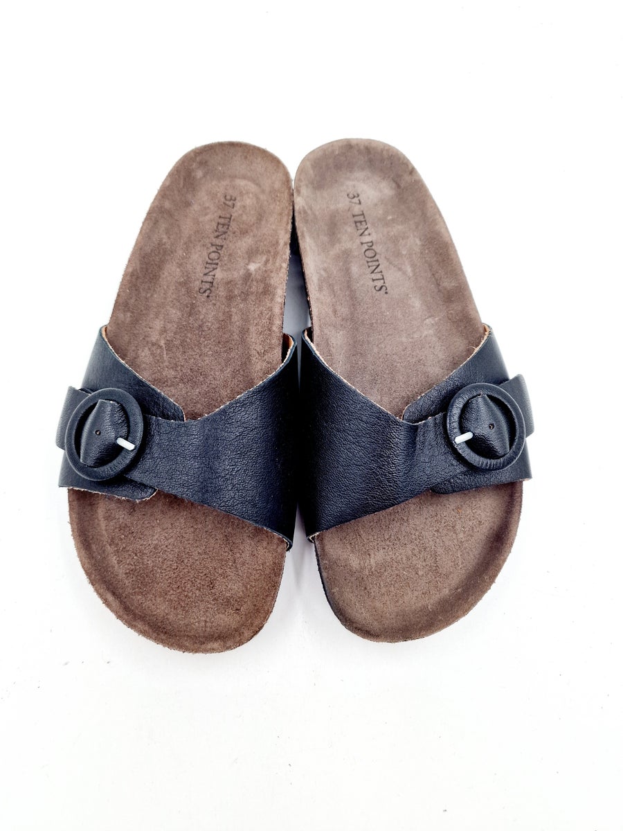 Our Vivienne sandal has a soft footbed for lazy days in the sun or for comfort indoors. This slip-in sandal made of soft nubuck has an over-foot buckle strap that can be easily adjusted to improve fit.