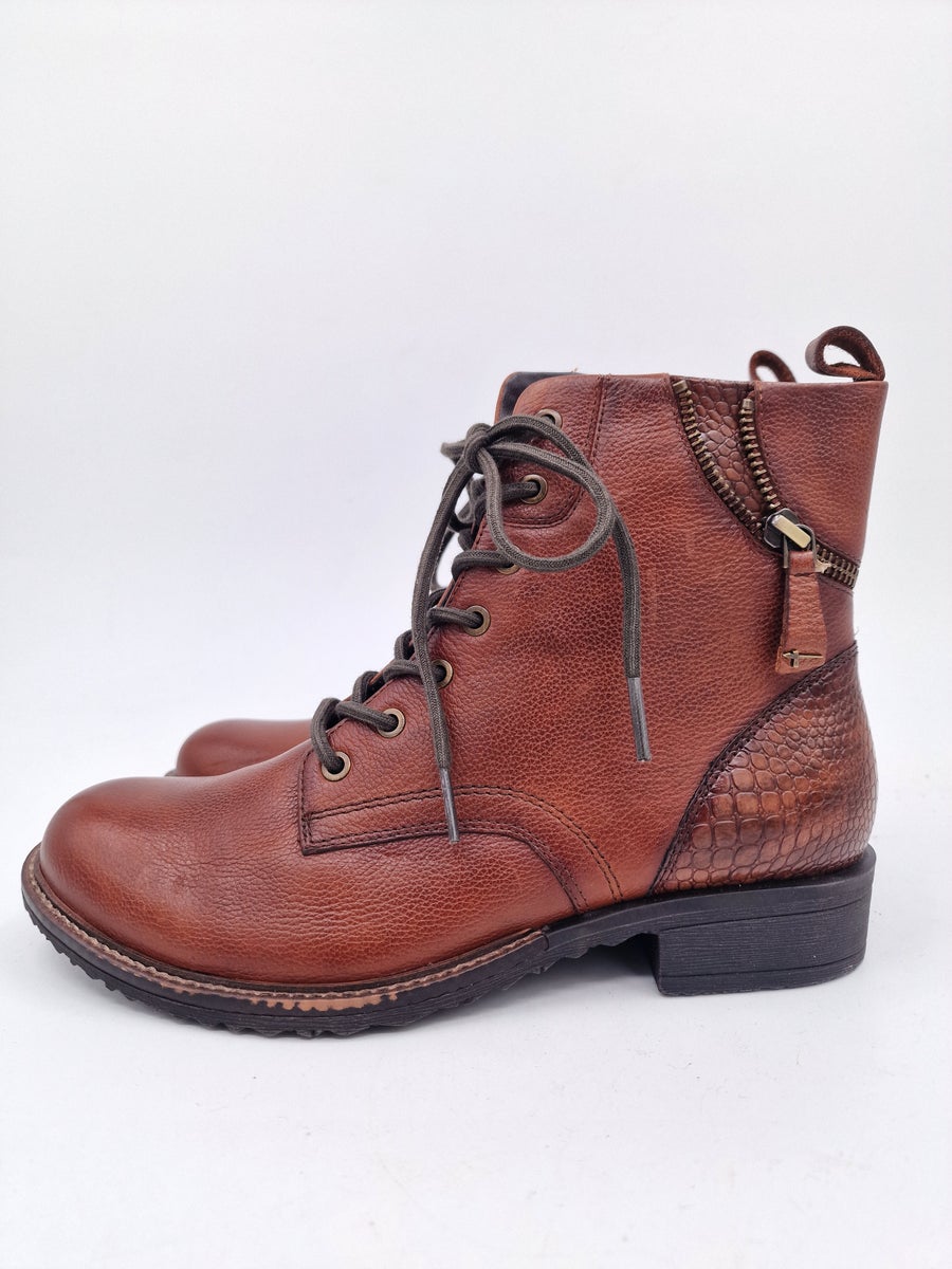 Article number: 1-25273-45-305Shaft height: 14 cmHeel type: no heelHeel height: 35 mmInsole: TextilesOuter material: Leather and textile material blendShoe tip: roundInner material: Textile and synthetic material blendFastener: Lacing, zip fasteningRemovable footbed: NoOutsole: Synthetics